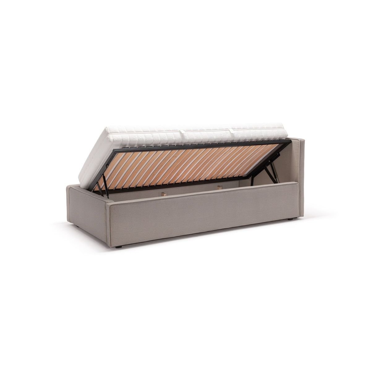 Тапицираното легло Nook е перфектната мебел за детска или тийнейджърска стая. То е чудесен спътник за игра с приятели, четене на приказки за лека нощ и мързеливи сутрини. Меката облегалка за глава осигурява удобна опора, докато си почивате. Можете да изберете цвета и плата, които да паснат идеално на вашия интериор.