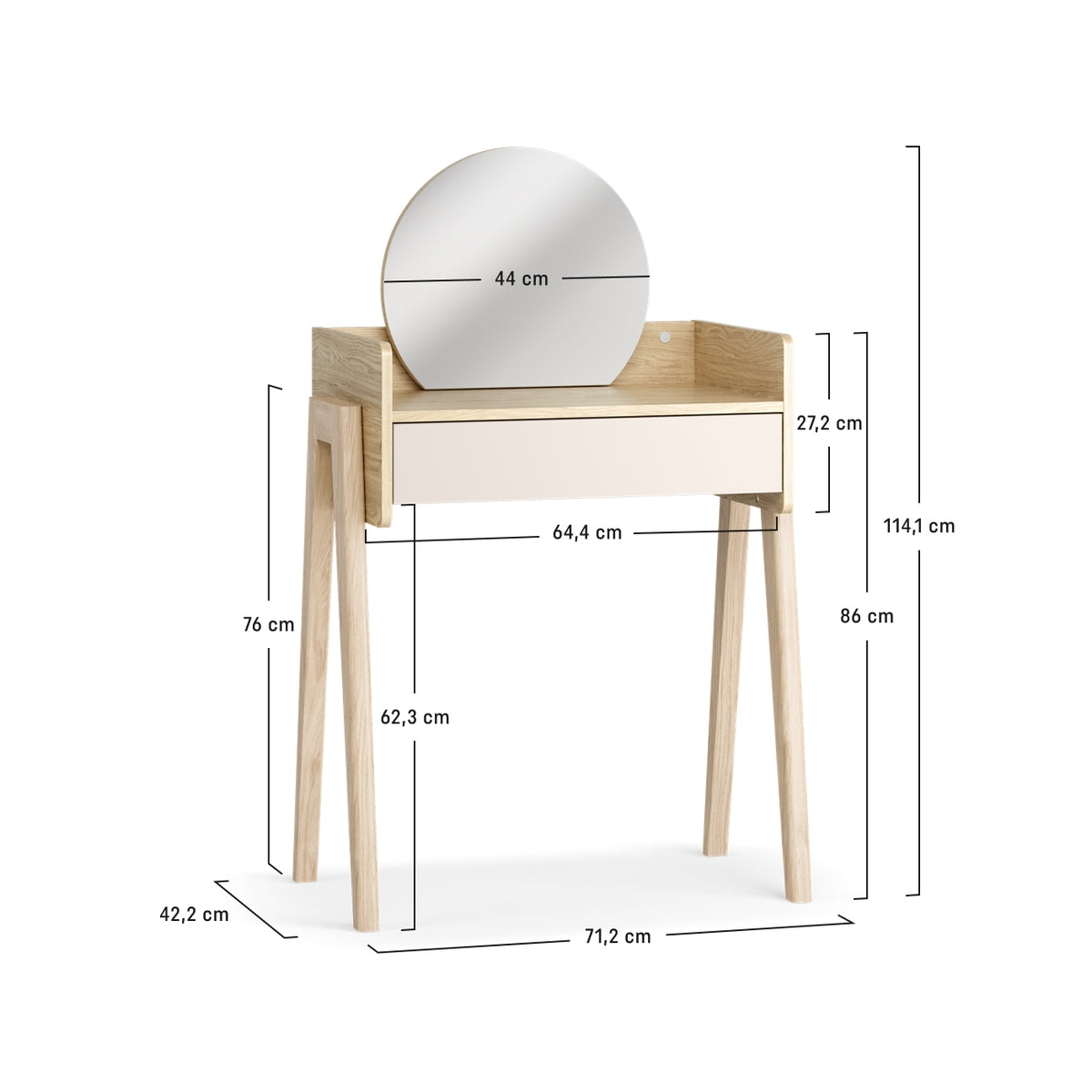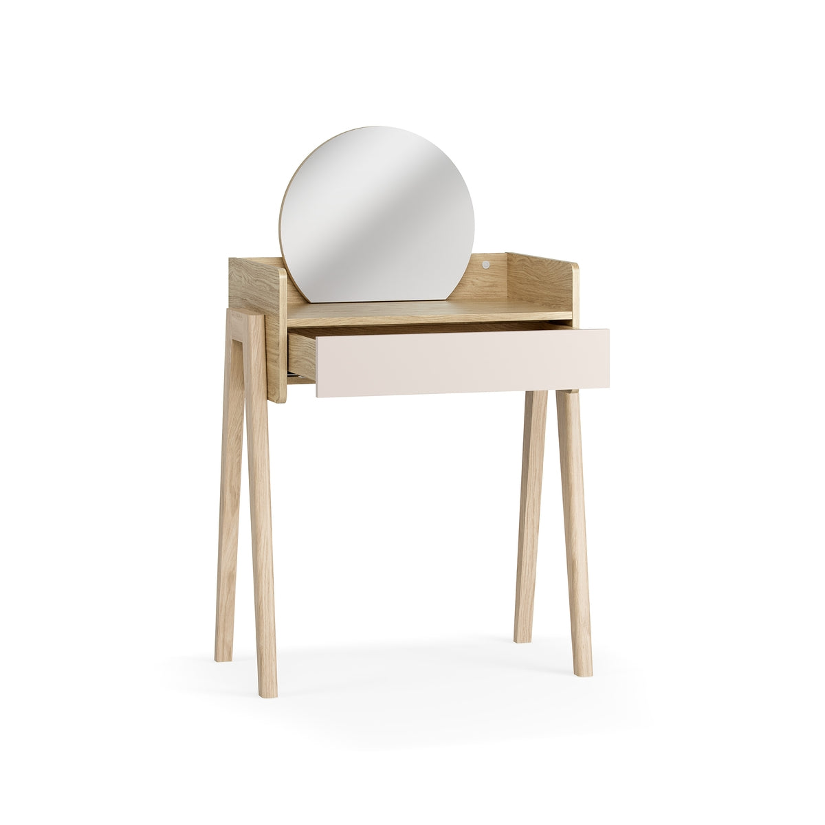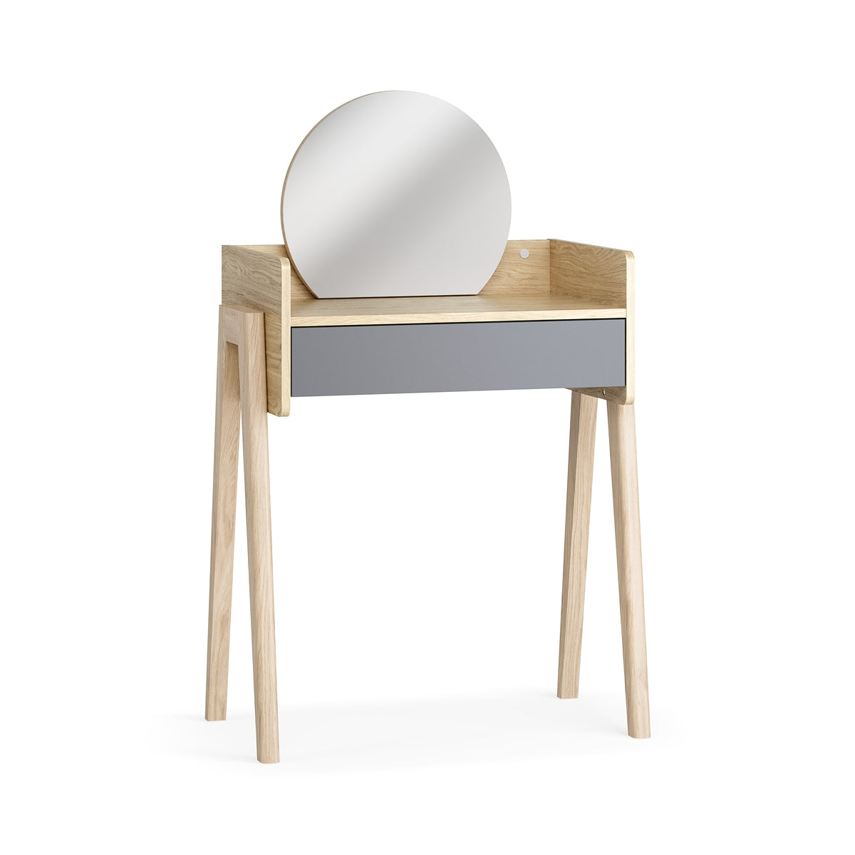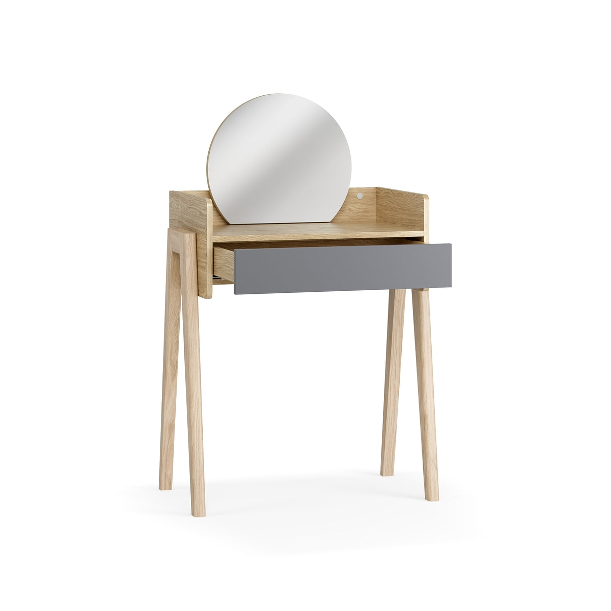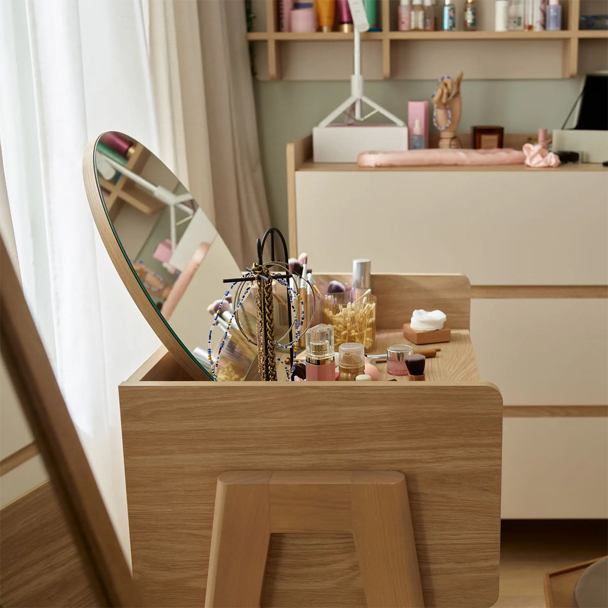 Тоалетката Muve е практично и стилно допълнение към всяка младежка стая. Благодарение на интелигентния си дизайн, тя предлага както място за грижа и грим, така и възможност за използване като малко бюро.