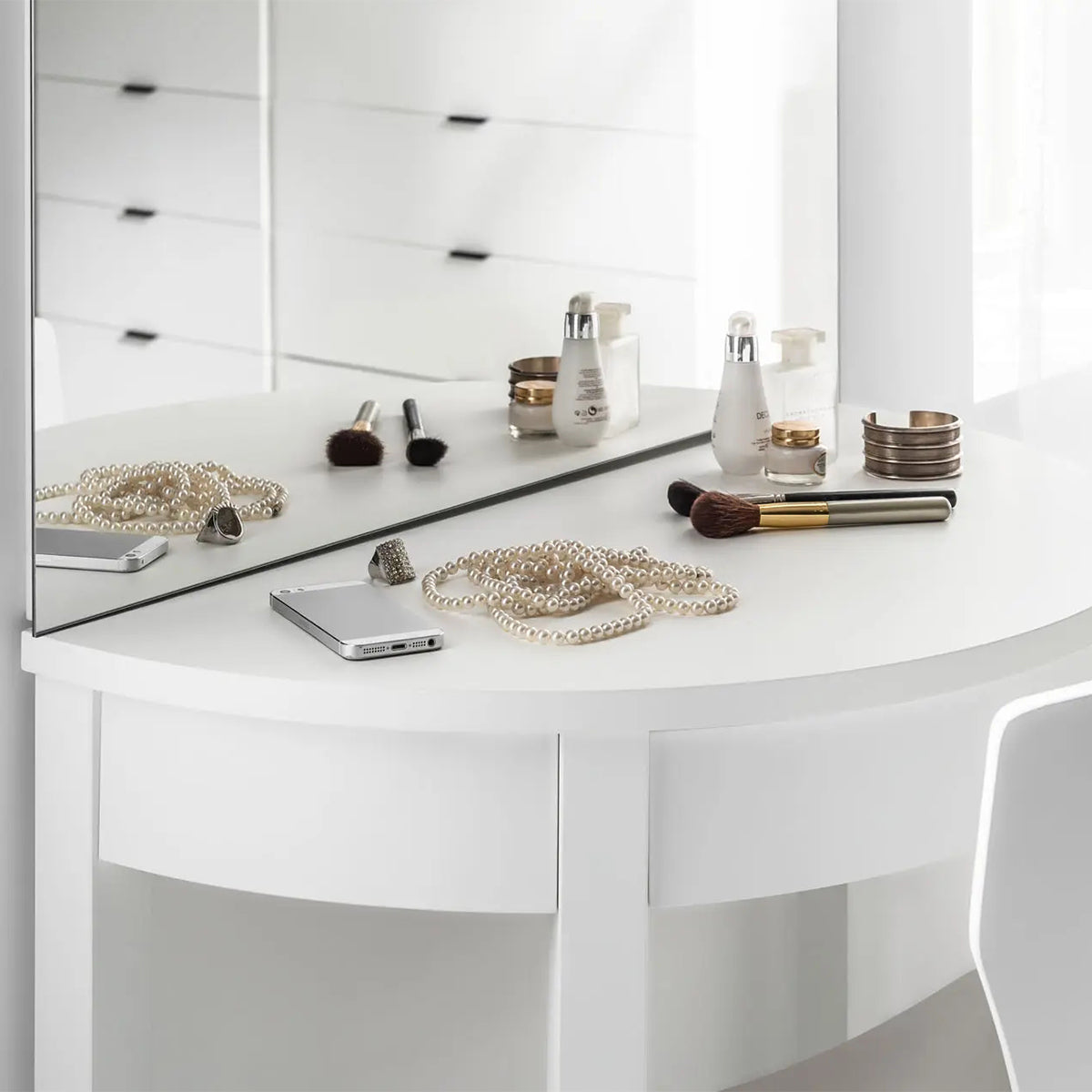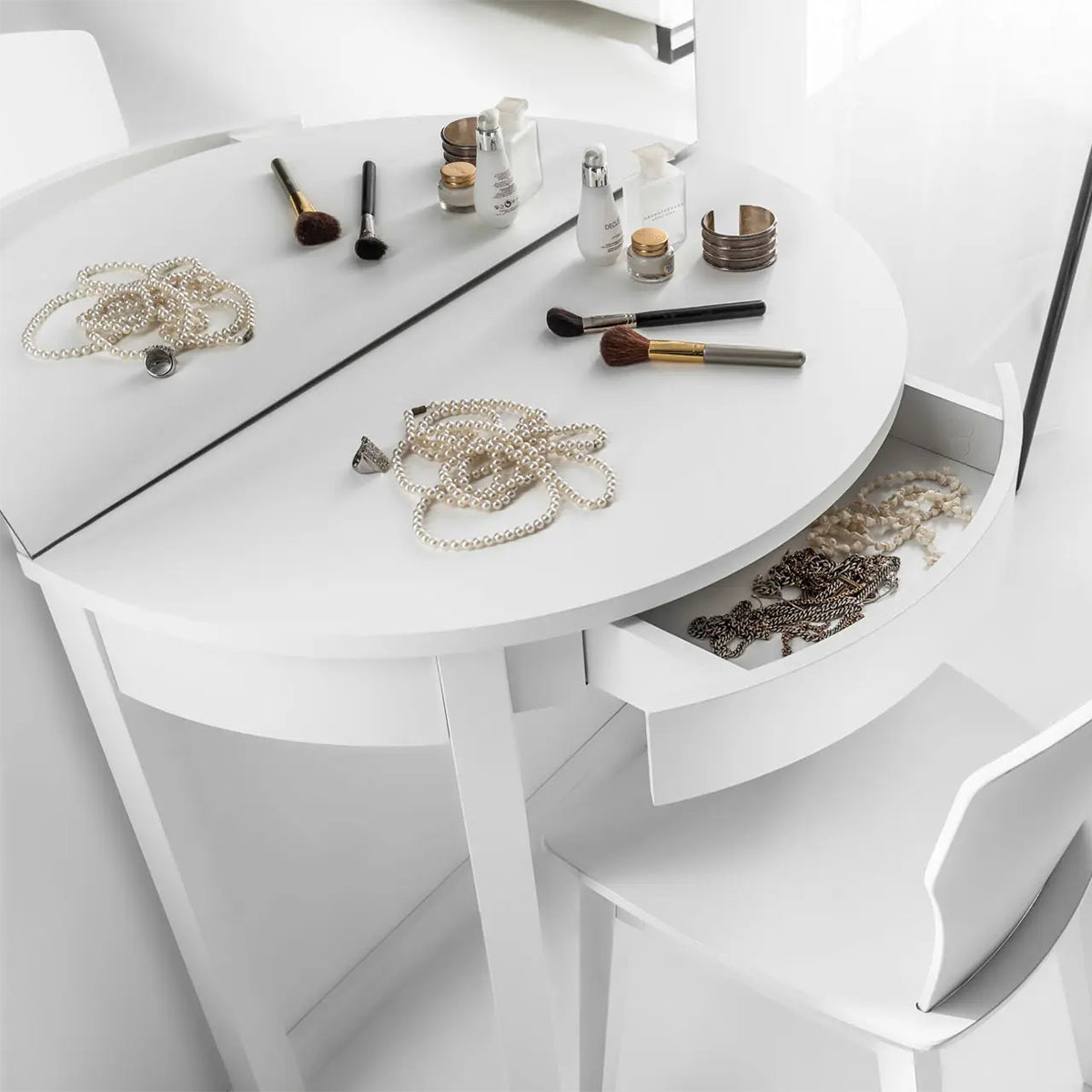 Под плота на тоалетката има малко чекмедже, в което можете да съхранявате различни полезни вещи като козметика или бижута, като така поддържате ред в къта си за красота.
