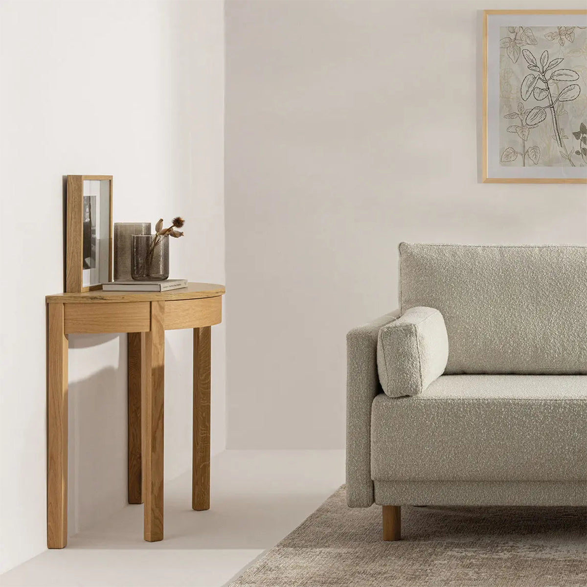 Тоалетката има полукръгла форма, което я прави изключително удобна за поставяне до стената. Плотът е с дебелина 43 см и ширина 80 см, а височината на тоалетката е 78 см, което я прави компактна и практична.