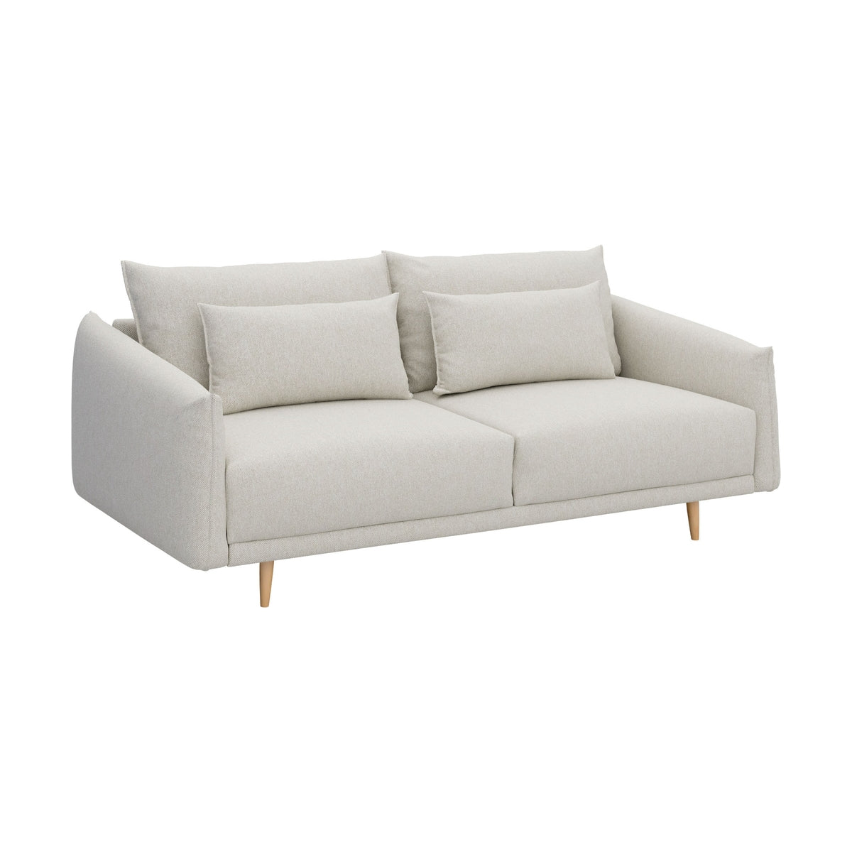 Удобен мек диван за ежедневна почивка. Оборудван е с мека седалка за 3 човека, широка облегалка и тънки подлакътници в ергономична форма. Диванът се допълва от комплект меки възглавници в 2 размера.