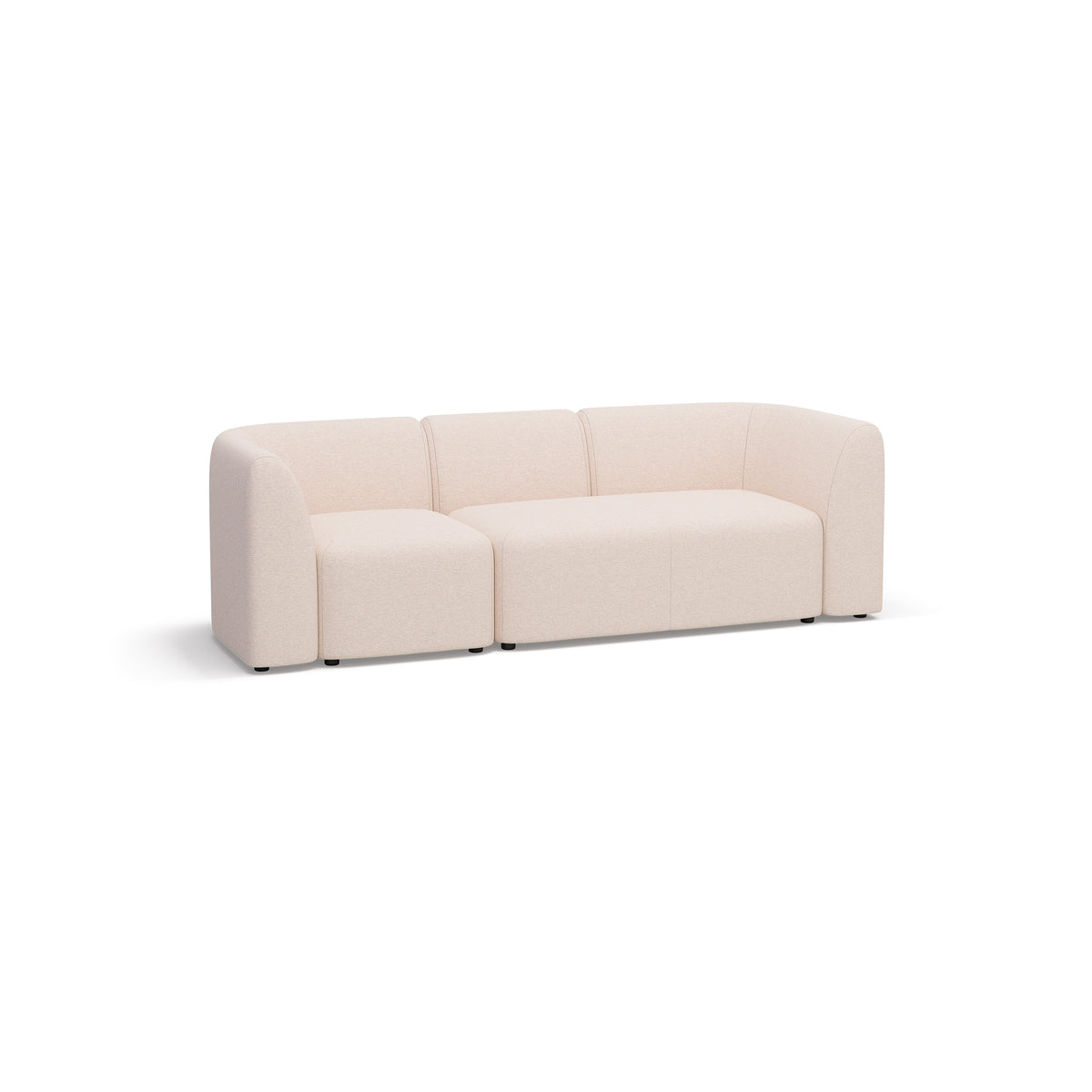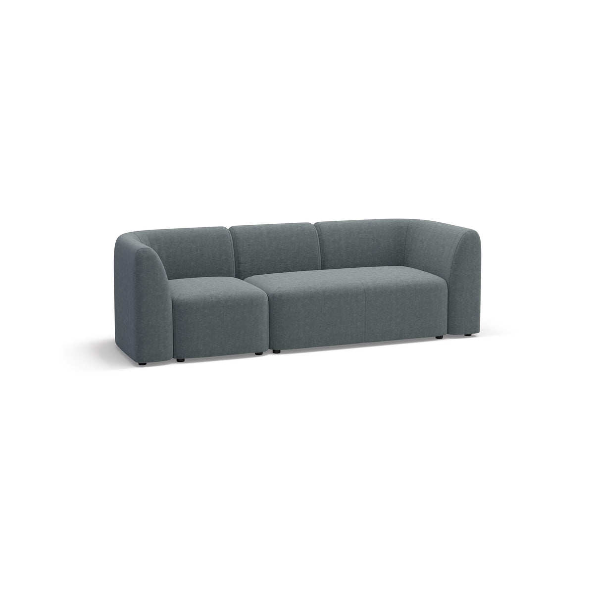 Съставен от два модула – двоен модул с подлакътник и ъглов модул; избор между дясно и ляво оформление