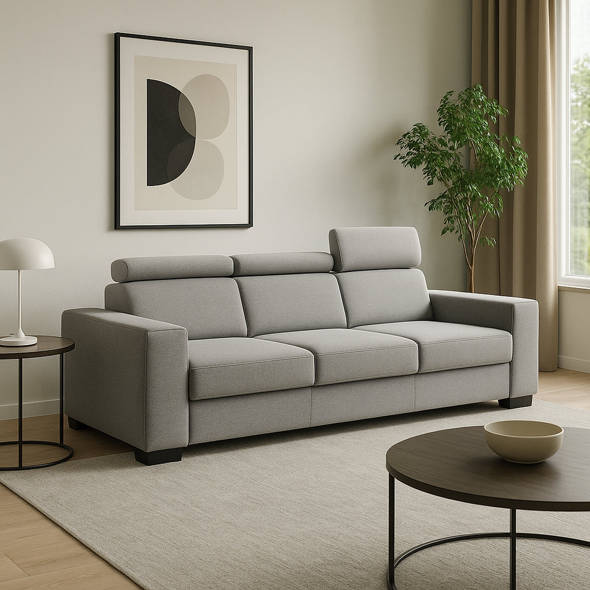 Дивана е мек и удобен, благодарение на липсата на механизъм за разтягане или ракла. Комфортът на почивка се увеличава от 2 широки подлакътника и 3 независимо регулируеми облегалки за глава.