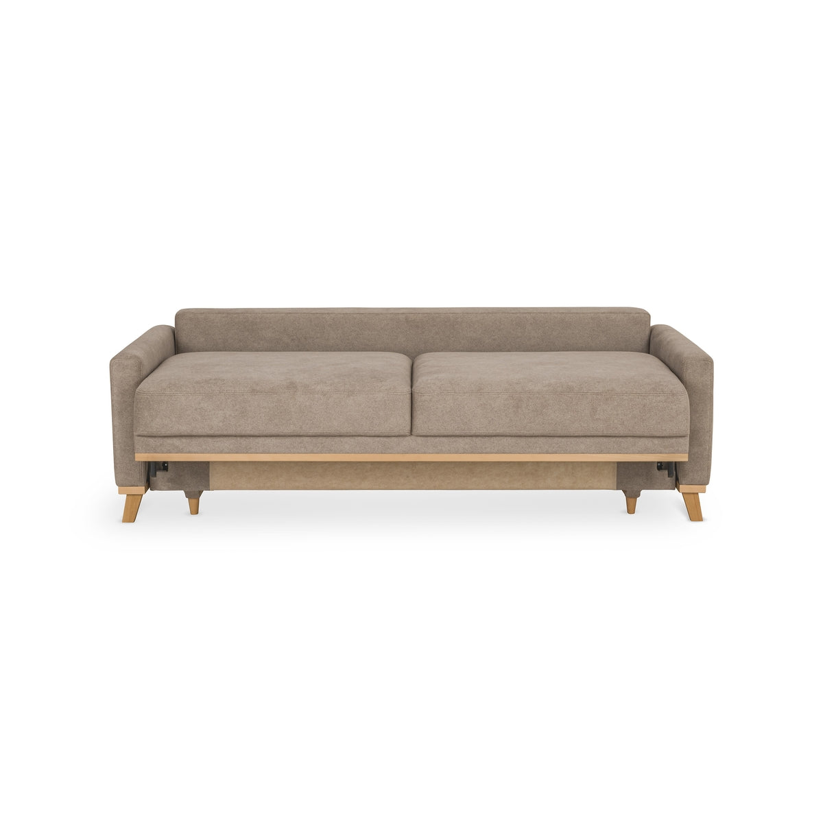 Създаден за уютни моменти с книга или дълги вечери пред телевизора, триместният диван Repose осигурява ежедневно удобство и модерен дизайн. Със своите изчистени линии и високи крака, той изглежда визуално лек и не утежнява интериора. Освен като комфортно място за сядане, лесно се трансформира в удобно легло.