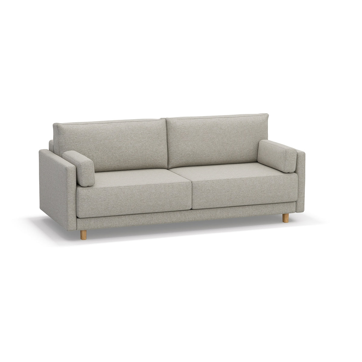 Този триместен диван с функция сън ще Ви осигури удобно място за почивка всеки ден и допълнително легло за членове на домакинството или гости. Благодарение на тънките си подлакътници, той ще се побере дори в по-малки стаи, а с опция за дъбови или черни крака ще пасне на всеки интериор.