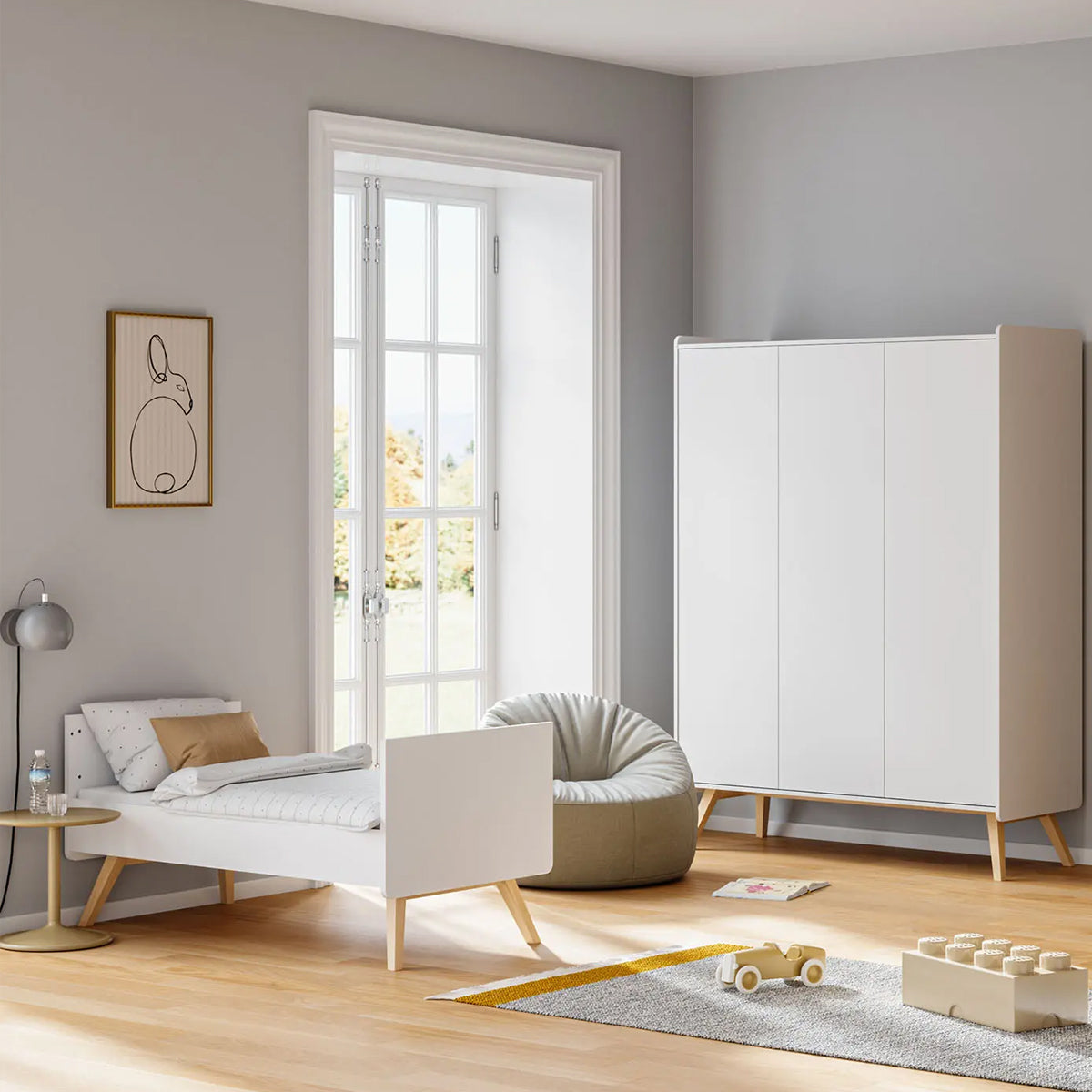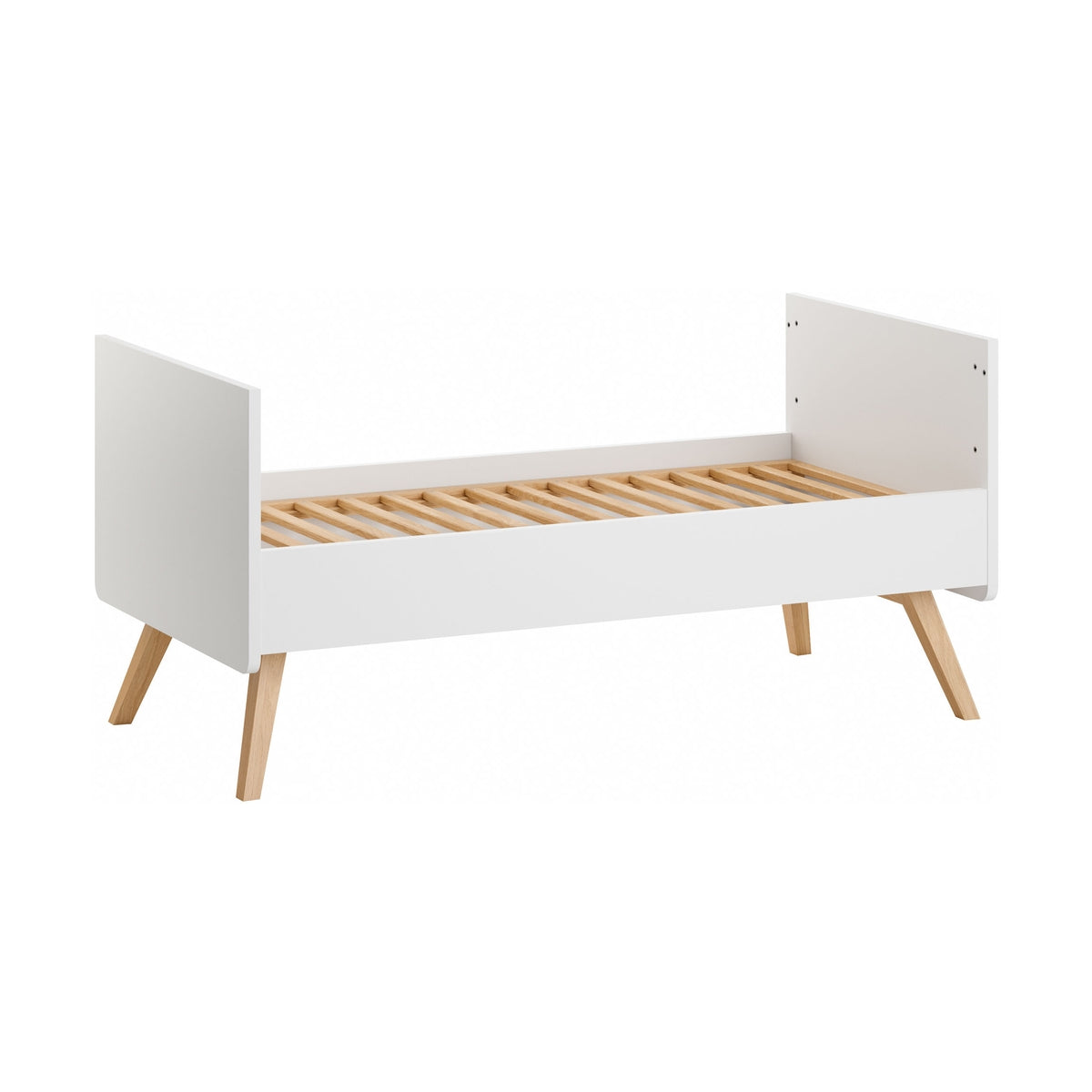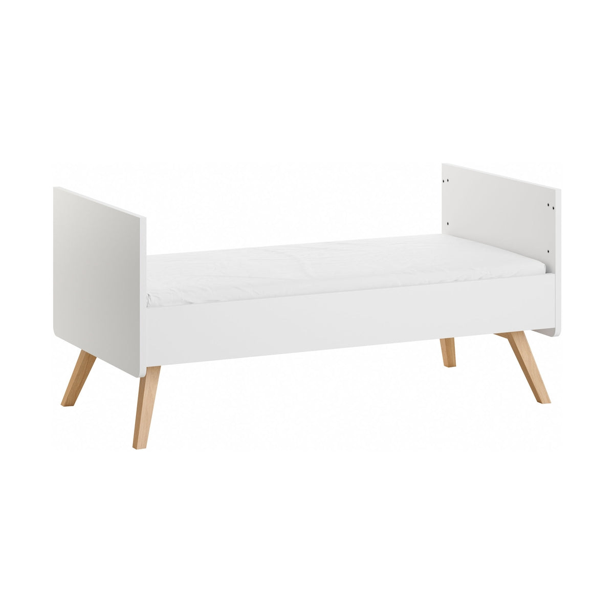Моделът в ретро стил е с дълги диагонални крака и дървена рамка. Осигурява подходяща вентилация и циркулация на въздуха, намалявайки алергените около малкото дете;